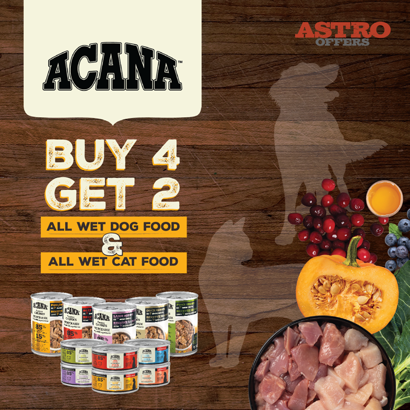🐾 ACANA SALE EVENT 🐾SAVE UP TO $9 ON DOG FOOD SAVE UP TO $6 ON CAT FOOD BUY 4 GET 2 FREE WET FOOD $2.55 OFF CHEWY STRIPS IN-STORE ONLY • STARTS MARCH 19