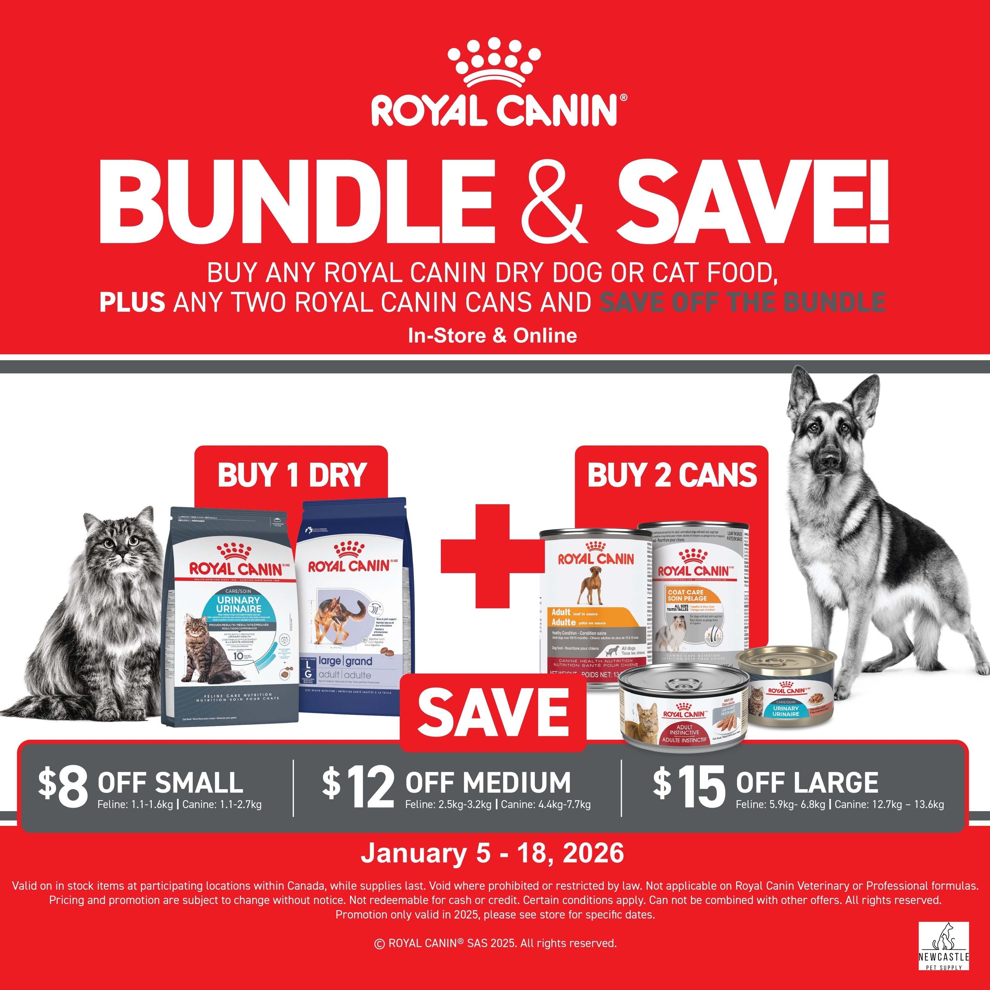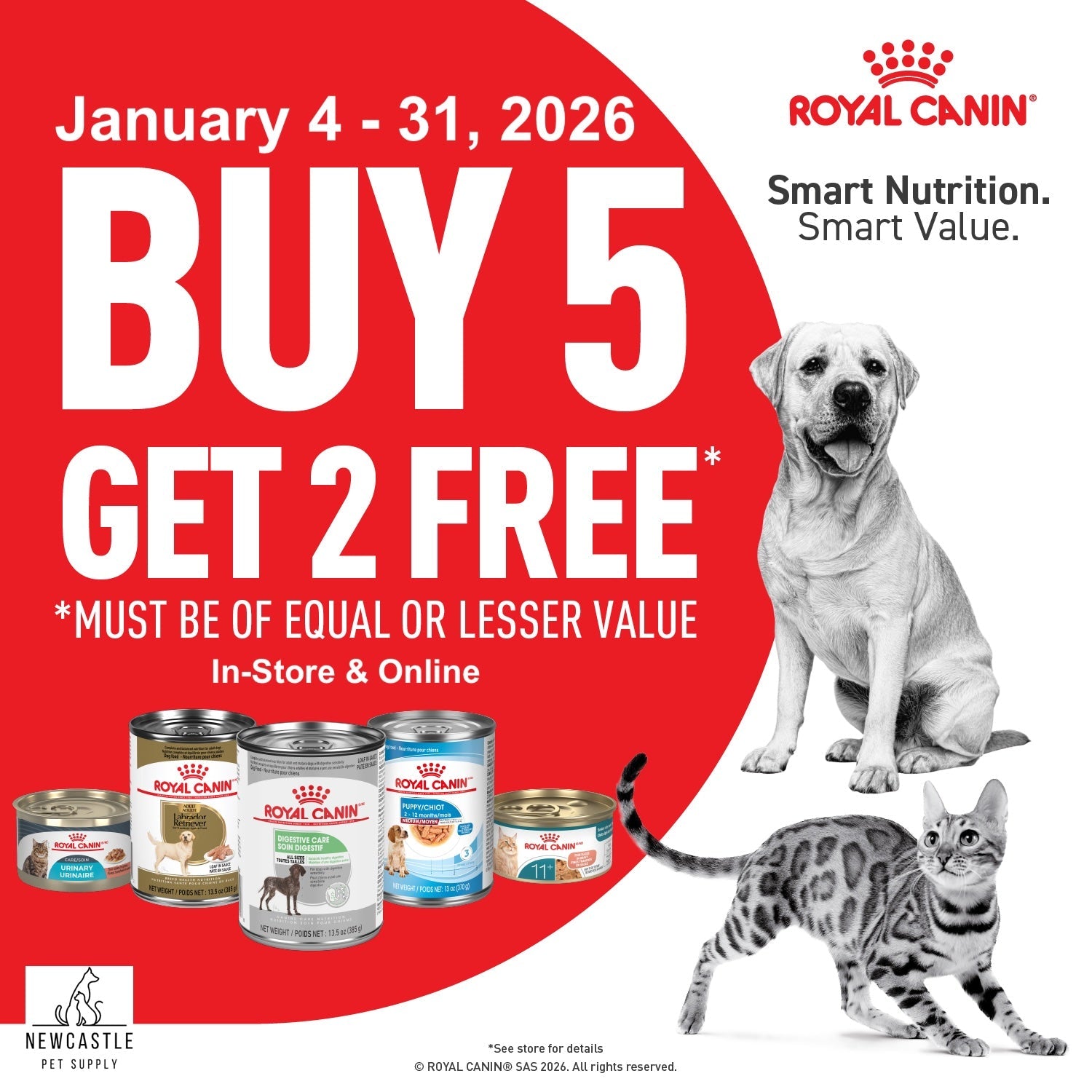 Purchase 5 Royal Canin feline or canine cans and get 2 free. ...