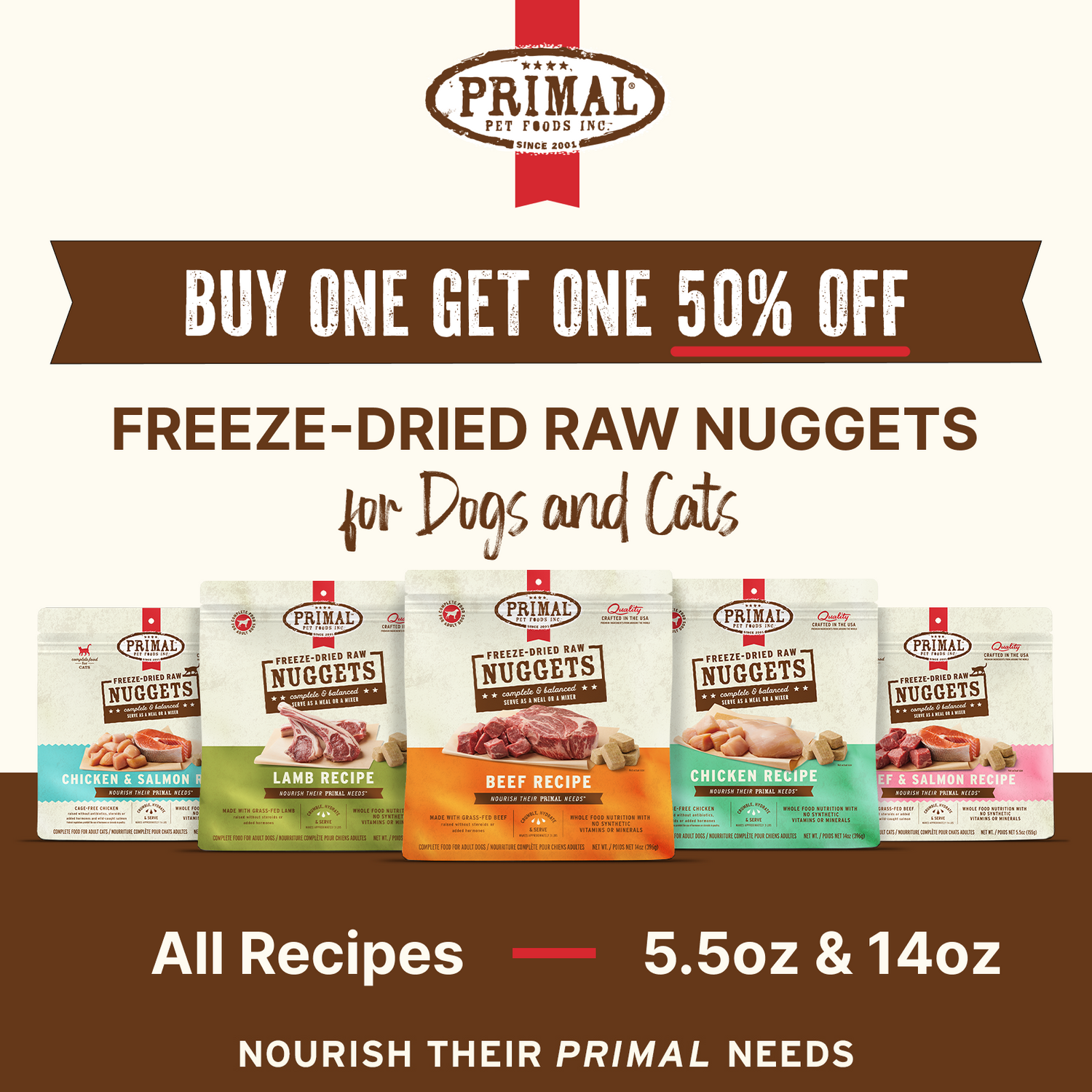 Buy one bag of Primal's 5.5-oz and/or 14-oz Freeze-Dried Nuggets and get...