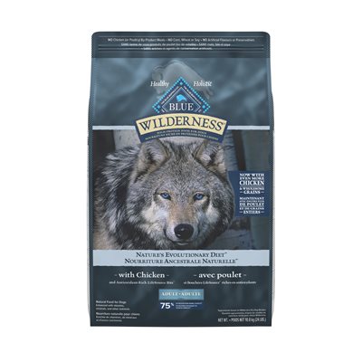 BLUE Wilderness Nature’s Evolutionary Diet Plus Wholesome Grains with Chicken, Oats and Barley for Adult Dogs is formulated to meet the nutritional levels established by the AAFCO Dog Food Nutrient Profiles for maintenance.