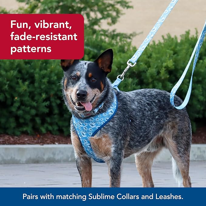 Looking for a stylish and functional dog harness that's perfect for all your adventures? Look no further than the Sublime® Reversible Dog Harness from Coastal Pet Products. This high-quality harness is made from durable materials and features fun and on-trend patterns that will make your pup look great. The reversible design means you can switch up the look whenever you want, and the new and improved buckle is easy to use. The overhead harness design is comfortable for your dog and makes it easy to put on and take off.