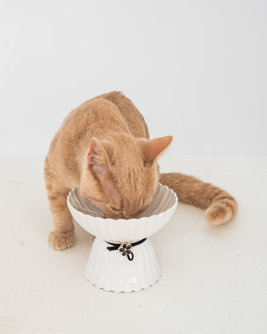 Introducing the Ceramic Cat Bowl featuring an elegant White & Black Flower design. With an 8.45oz capacity, it's perfect for generous portions. Crafted for style and ease of use, this bowl ensures your cat dines with sophistication.