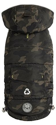 The GF Pet® Recycled Parka is made from 100% recycled fabrics. The fabric used to make this sustainable parka is produced from recycled water bottles and is responsible, versatile, heritage-inspired and weather resistant. Enjoy the ever-stylish GF Pet® signature contrast binding and accents. With its' tackable hood, practical real pocket and reflective piping, it will keep your dog protected and cozy. Super adjustable, with patented Elasto-Fit® technology! For dogs and owners who are proud to support our planet.