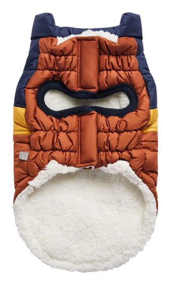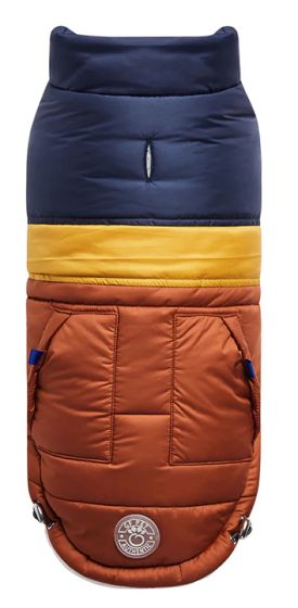 The GF Pet® Retro Puffer dog jacket is a great choice for active dogs who are looking for eye-popping, carefree fashion and warmth. Its' ultra-puff, trendy color-blocks are a stunning statement of canine vogue! Both retro and modern at the same time, this gorgeous coat sports oversized faux pockets, accent stitching and next generation styling. With GF Pet® signature contrast pocket tabs & contrast binding, this retro puffer keeps it real with its' snuggly warm popcorn sherpa lining. Water repellent and super adjustable, with patented Elasto-Fit® technology! Designed to keep cool dogs warm and stylish!