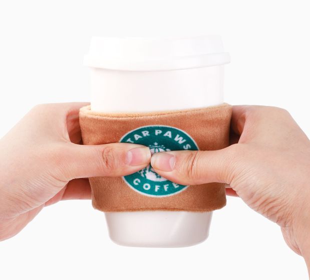 Brew up some fun with this dog toy! This toy features a squeaky rubber coffee cup wrapped in a plush, crinkly sleeve for a mix of textures and sounds. The fabric layer is removable, turning one toy into two for double the fun. Built for long-lasting chews, it's a treat for any pup to squeeze and play with. Plus, its vanilla scent will keep your dog engaged longer!