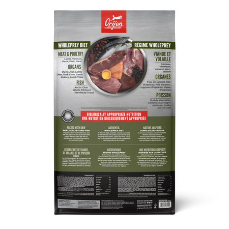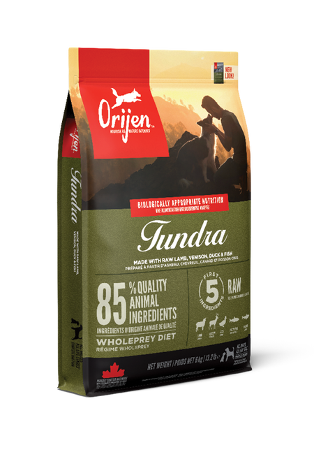 Help your dog thrive with the power of protein-rich recipes that provide peak nourishment. Dogs are ancestral carnivores, so they need a Biologically Appropriate diet rich and varied in whole animal ingredients. ORIJEN® Tundra diet provides your dog with the nourishing protein and nutrients they need, from fresh or raw1 ingredients like duck, fish and venison. Packed with WholePrey animal ingredients like organs and bone, ORIJEN food is made with the most nutrient-dense, succulent parts of the prey to deliver the nutrition dogs need. With 85%2 quality animal ingredients and coated with freeze-dried liver, this diet is beyond comparison.