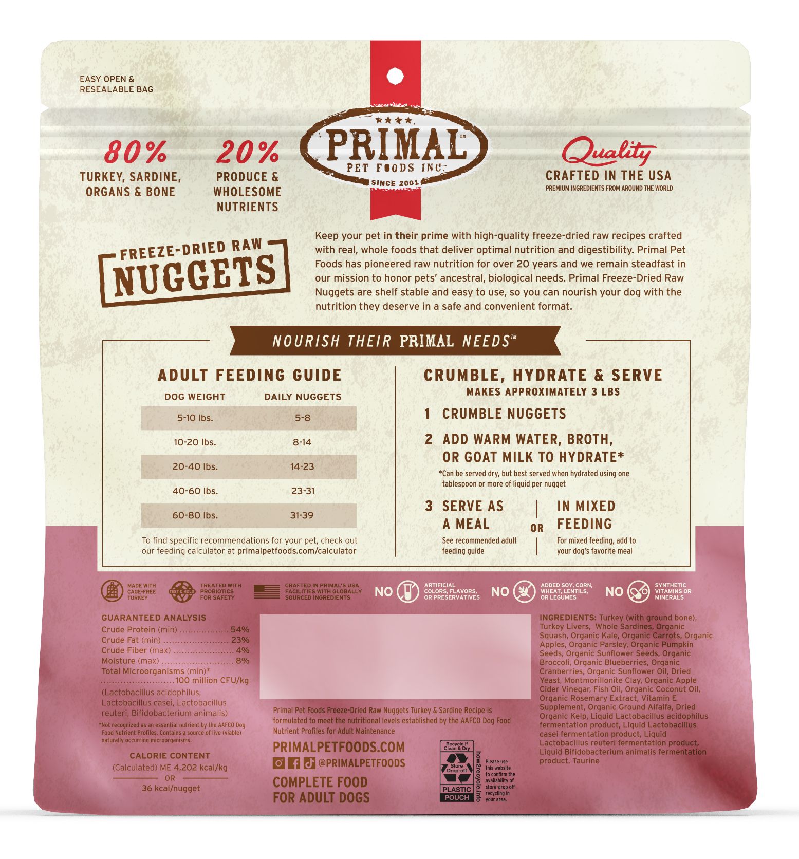 Primal Raw Freeze-Dried Nuggets Turkey & Sardine Formula Dog Food, 14-oz (Size: 14-oz)