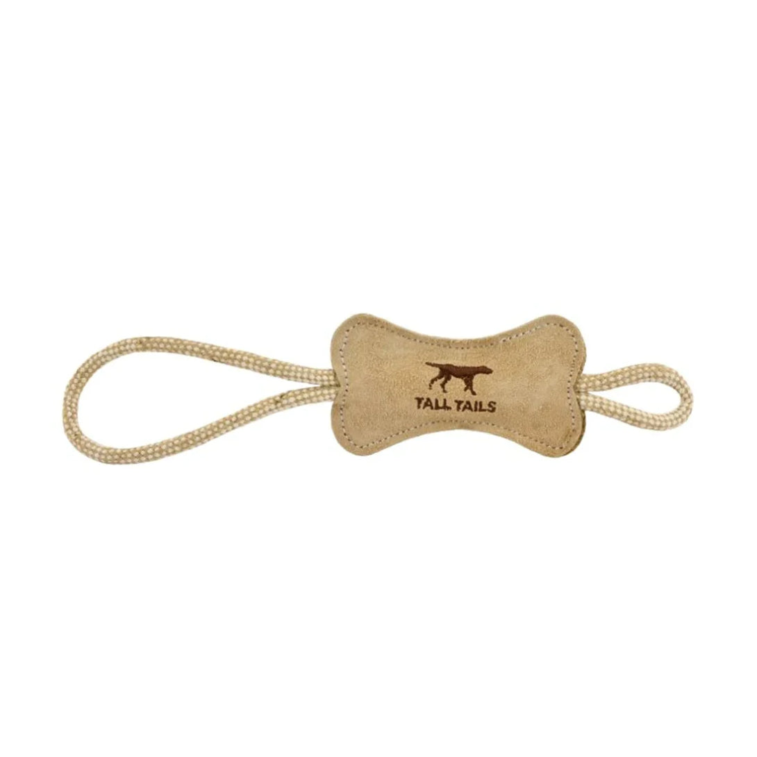 Tall Tails – Natural Leather & Wool Bone Tug Toy – 16″